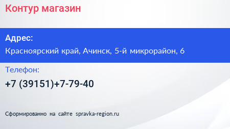 Контур, магазин по адресу Красноярский край, Ачинск, 5-й микрорайон, 6 в дальнейшем Организация, размещена в следующих категориях: