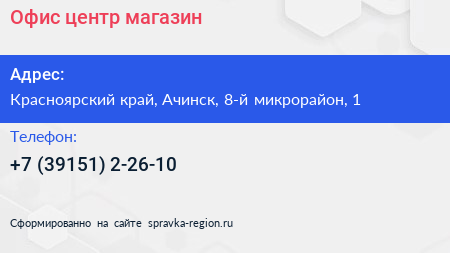 Офис-центр, магазин по адресу Красноярский край, Ачинск, 8-й микрорайон, 1 в дальнейшем Организация, размещена в следующих категориях: