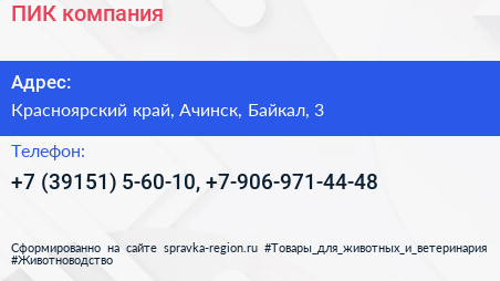 ПИК, компания по адресу Красноярский край, Ачинск, Байкал, 3 в дальнейшем Организация, размещена в следующих категориях: