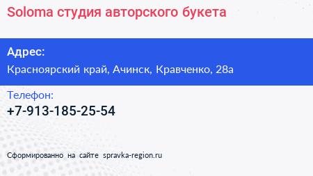 Soloma, студия авторского букета по адресу Красноярский край, Ачинск, Кравченко, 28а в дальнейшем Организация, размещена в следующих категориях: