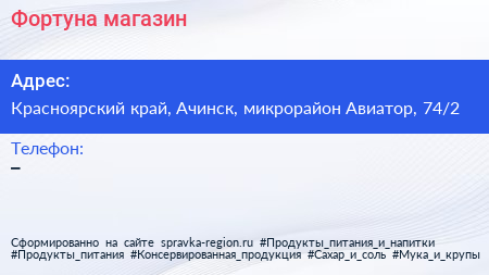 Фортуна, магазин по адресу Красноярский край, Ачинск, микрорайон Авиатор, 74/2 в дальнейшем Организация, размещена в следующих категориях: