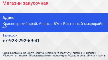 Магазин-закусочная по адресу Красноярский край, Ачинск, Юго-Восточный микрорайон, 49 в дальнейшем Организация, размещена в следующих категориях: