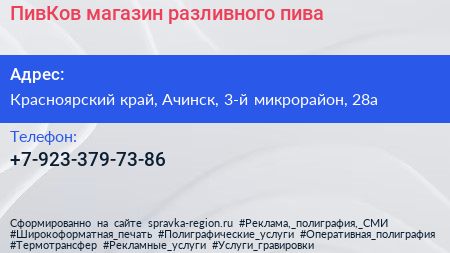 ПивКов, магазин разливного пива по адресу Красноярский край, Ачинск, 3-й микрорайон, 28а в дальнейшем Организация, размещена в следующих категориях: