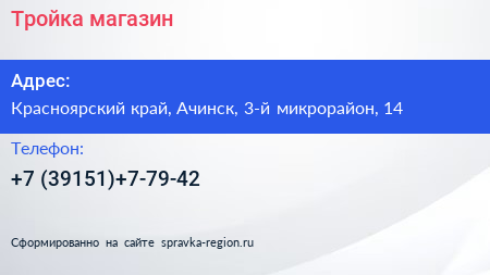 Тройка, магазин по адресу Красноярский край, Ачинск, 3-й микрорайон, 14 в дальнейшем Организация, размещена в следующих категориях: