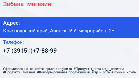 Забава+, магазин по адресу Красноярский край, Ачинск, 9-й микрорайон, 26 в дальнейшем Организация, размещена в следующих категориях: