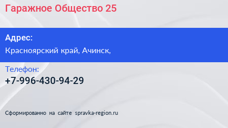 Гаражное Общество № 25 по адресу Красноярский край, Ачинск, в дальнейшем Организация, размещена в следующих категориях: