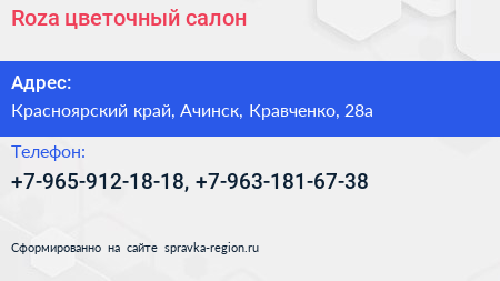 Roza, цветочный салон по адресу Красноярский край, Ачинск, Кравченко, 28а в дальнейшем Организация, размещена в следующих категориях: