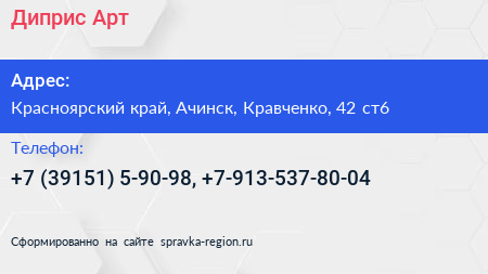 Диприс-Арт по адресу Красноярский край, Ачинск, Кравченко, 42 ст6 в дальнейшем Организация, размещена в следующих категориях: