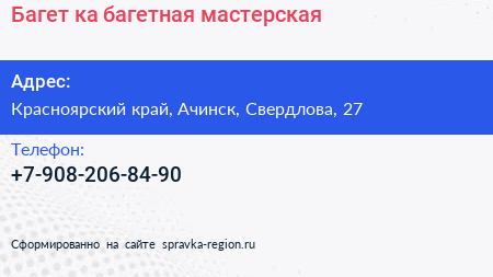Багет.ка, багетная мастерская по адресу Красноярский край, Ачинск, Свердлова, 27 в дальнейшем Организация, размещена в следующих категориях: