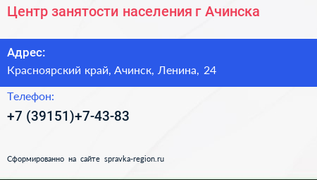 Центр занятости населения г. Ачинска по адресу Красноярский край, Ачинск, Ленина, 24 в дальнейшем Организация, размещена в следующих категориях: