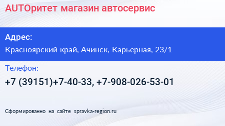 AUTOритет, магазин-автосервис по адресу Красноярский край, Ачинск, Карьерная, 23/1 в дальнейшем Организация, размещена в следующих категориях: