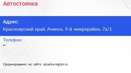 Автостоянка по адресу Красноярский край, Ачинск, 9-й микрорайон, 7а/1 в дальнейшем Организация, размещена в следующих категориях: