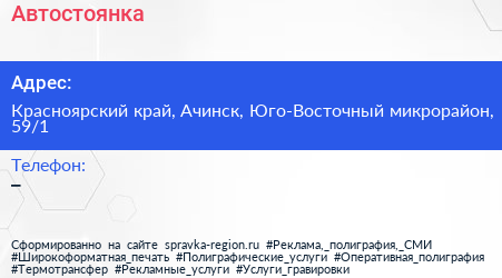 Автостоянка по адресу Красноярский край, Ачинск, Юго-Восточный микрорайон, 59/1 в дальнейшем Организация, размещена в следующих категориях:
