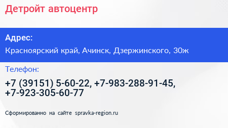 Детройт, автоцентр по адресу Красноярский край, Ачинск, Дзержинского, 30ж в дальнейшем Организация, размещена в следующих категориях: