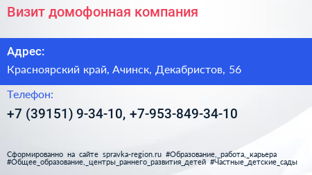 Визит, домофонная компания по адресу Красноярский край, Ачинск, Декабристов, 56 в дальнейшем Организация, размещена в следующих категориях: