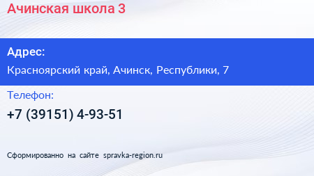 Ачинская школа №3 по адресу Красноярский край, Ачинск, Республики, 7 в дальнейшем Организация, размещена в следующих категориях: