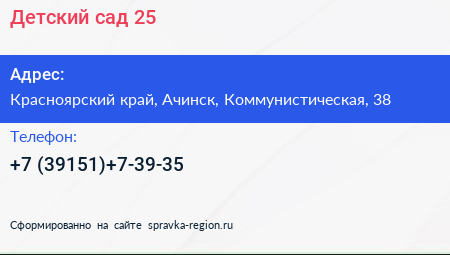 Детский сад №25 по адресу Красноярский край, Ачинск, Коммунистическая, 38 в дальнейшем Организация, размещена в следующих категориях: