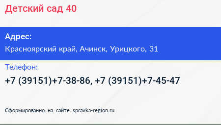 Детский сад №40 по адресу Красноярский край, Ачинск, Урицкого, 31 в дальнейшем Организация, размещена в следующих категориях: