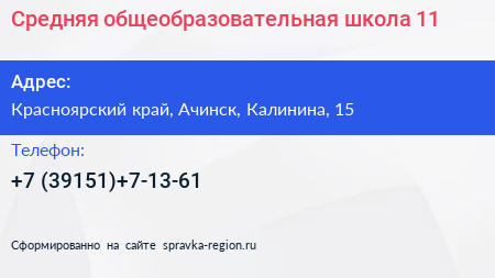 Средняя общеобразовательная школа №11 по адресу Красноярский край, Ачинск, Калинина, 15 в дальнейшем Организация, размещена в следующих категориях: