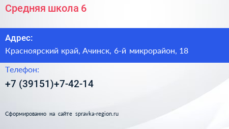Средняя школа №6 по адресу Красноярский край, Ачинск, 6-й микрорайон, 18 в дальнейшем Организация, размещена в следующих категориях: