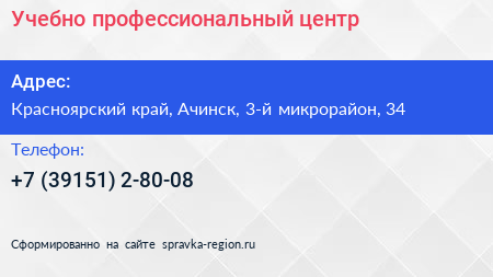 Учебно-профессиональный центр по адресу Красноярский край, Ачинск, 3-й микрорайон, 34 в дальнейшем Организация, размещена в следующих категориях: