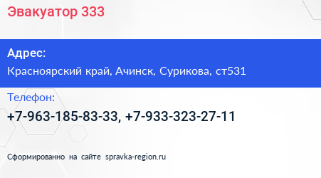 Эвакуатор 333 по адресу Красноярский край, Ачинск, Сурикова, ст531 в дальнейшем Организация, размещена в следующих категориях: