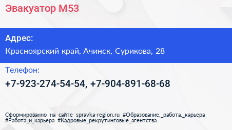 Эвакуатор М53 по адресу Красноярский край, Ачинск, Сурикова, 28 в дальнейшем Организация, размещена в следующих категориях: