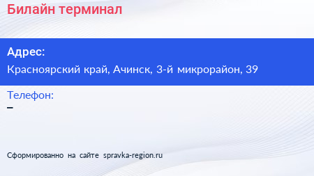 Билайн, терминал по адресу Красноярский край, Ачинск, 3-й микрорайон, 39 в дальнейшем Организация, размещена в следующих категориях: