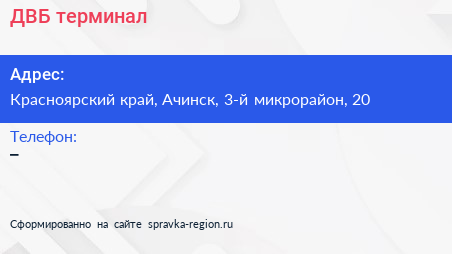 ДВБ, терминал по адресу Красноярский край, Ачинск, 3-й микрорайон, 20 в дальнейшем Организация, размещена в следующих категориях: