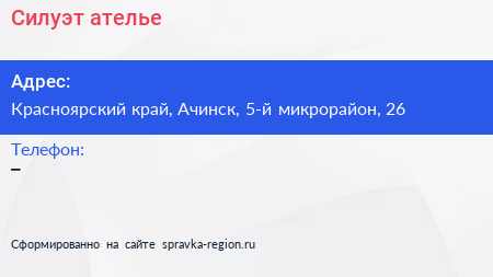 Силуэт, ателье по адресу Красноярский край, Ачинск, 5-й микрорайон, 26 в дальнейшем Организация, размещена в следующих категориях: