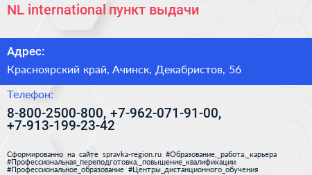 NL international, пункт выдачи по адресу Красноярский край, Ачинск, Декабристов, 56 в дальнейшем Организация, размещена в следующих категориях: