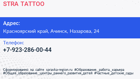 STRA TATTOO по адресу Красноярский край, Ачинск, Назарова, 24 в дальнейшем Организация, размещена в следующих категориях: