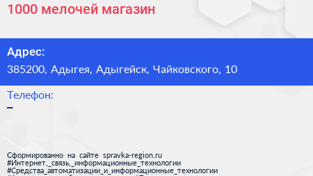 1000 мелочей, магазин по адресу 385200, Адыгея, Адыгейск, Чайковского, 10 в дальнейшем Организация, размещена в следующих категориях: