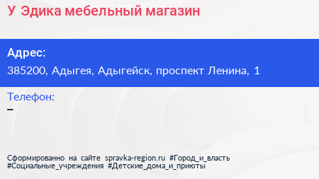 У Эдика, мебельный магазин по адресу 385200, Адыгея, Адыгейск, проспект Ленина, 1 в дальнейшем Организация, размещена в следующих категориях: