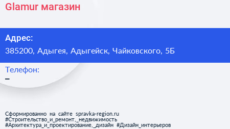 Glamur, магазин по адресу 385200, Адыгея, Адыгейск, Чайковского, 5Б в дальнейшем Организация, размещена в следующих категориях: