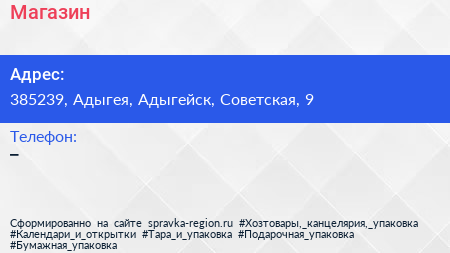 Магазин по адресу 385239, Адыгея, Адыгейск, Советская, 9 в дальнейшем Организация, размещена в следующих категориях: