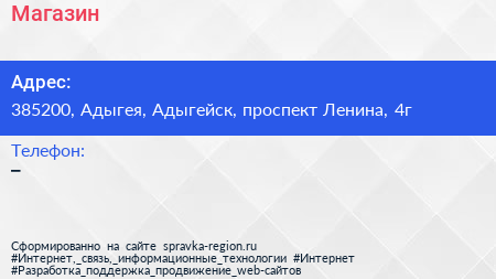 Магазин по адресу 385200, Адыгея, Адыгейск, проспект Ленина, 4г в дальнейшем Организация, размещена в следующих категориях: