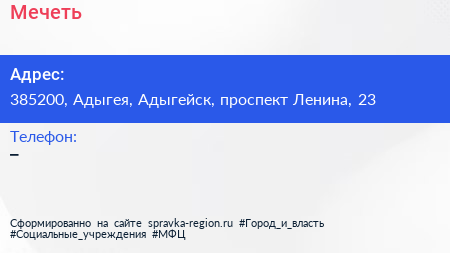 Мечеть по адресу 385200, Адыгея, Адыгейск, проспект Ленина, 23 в дальнейшем Организация, размещена в следующих категориях: