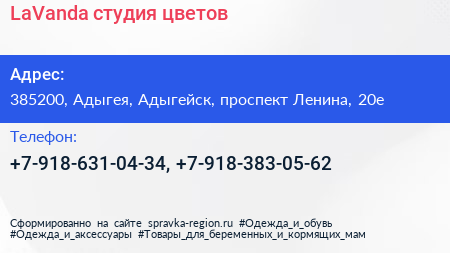 LaVanda, студия цветов по адресу 385200, Адыгея, Адыгейск, проспект Ленина, 20е в дальнейшем Организация, размещена в следующих категориях: