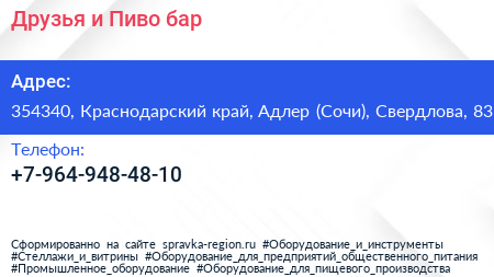 Друзья и Пиво, бар по адресу 354340, Краснодарский край, Адлер (Сочи), Свердлова, 83 в дальнейшем Организация, размещена в следующих категориях: