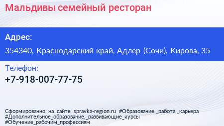 Мальдивы, семейный ресторан по адресу 354340, Краснодарский край, Адлер (Сочи), Кирова, 35 в дальнейшем Организация, размещена в следующих категориях: