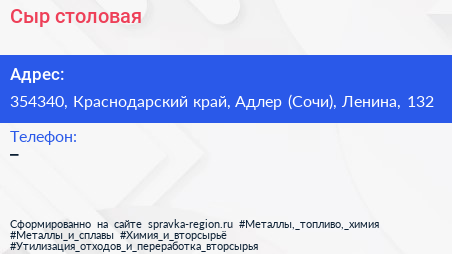 Сыр, столовая по адресу 354340, Краснодарский край, Адлер (Сочи), Ленина, 132 в дальнейшем Организация, размещена в следующих категориях: