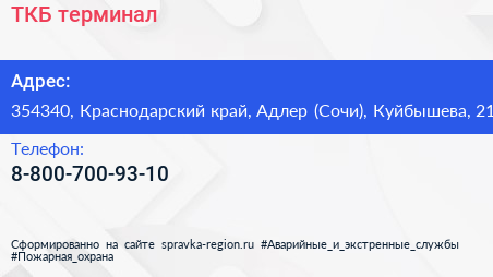 ТКБ, терминал по адресу 354340, Краснодарский край, Адлер (Сочи), Куйбышева, 21 в дальнейшем Организация, размещена в следующих категориях: