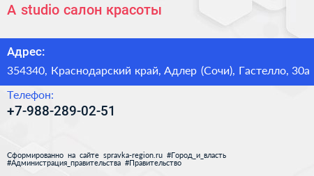 A studio, салон красоты по адресу 354340, Краснодарский край, Адлер (Сочи), Гастелло, 30а в дальнейшем Организация, размещена в следующих категориях: