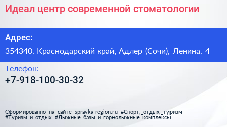 Идеал, центр современной стоматологии по адресу 354340, Краснодарский край, Адлер (Сочи), Ленина, 4 в дальнейшем Организация, размещена в следующих категориях: