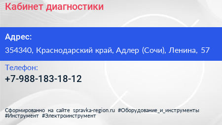 Кабинет диагностики по адресу 354340, Краснодарский край, Адлер (Сочи), Ленина, 57 в дальнейшем Организация, размещена в следующих категориях: