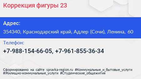 Коррекция фигуры 23 по адресу 354340, Краснодарский край, Адлер (Сочи), Ленина, 60 в дальнейшем Организация, размещена в следующих категориях: