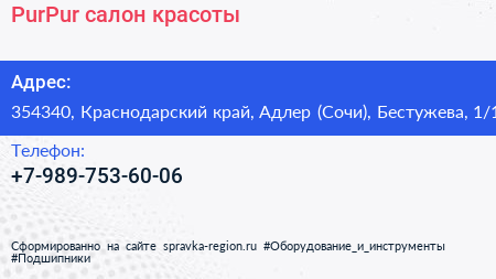 PurPur, салон красоты по адресу 354340, Краснодарский край, Адлер (Сочи), Бестужева, 1/1 в дальнейшем Организация, размещена в следующих категориях: