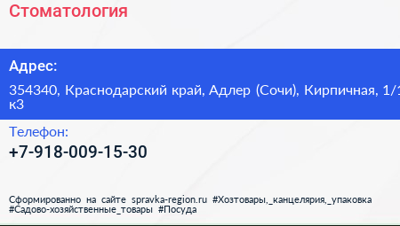 Стоматология по адресу 354340, Краснодарский край, Адлер (Сочи), Кирпичная, 1/1 к3 в дальнейшем Организация, размещена в следующих категориях: