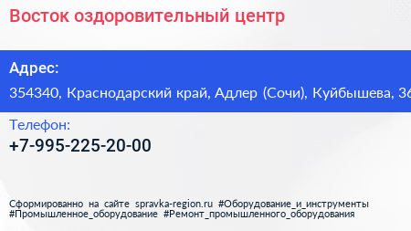 Восток, оздоровительный центр по адресу 354340, Краснодарский край, Адлер (Сочи), Куйбышева, 36 в дальнейшем Организация, размещена в следующих категориях: